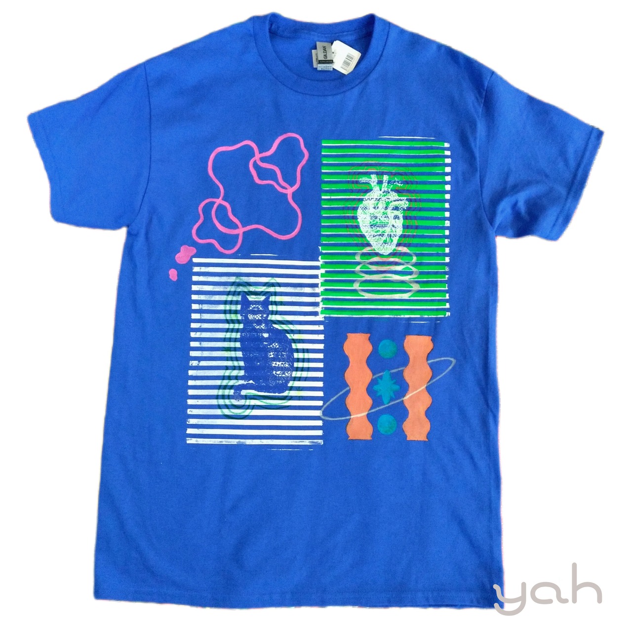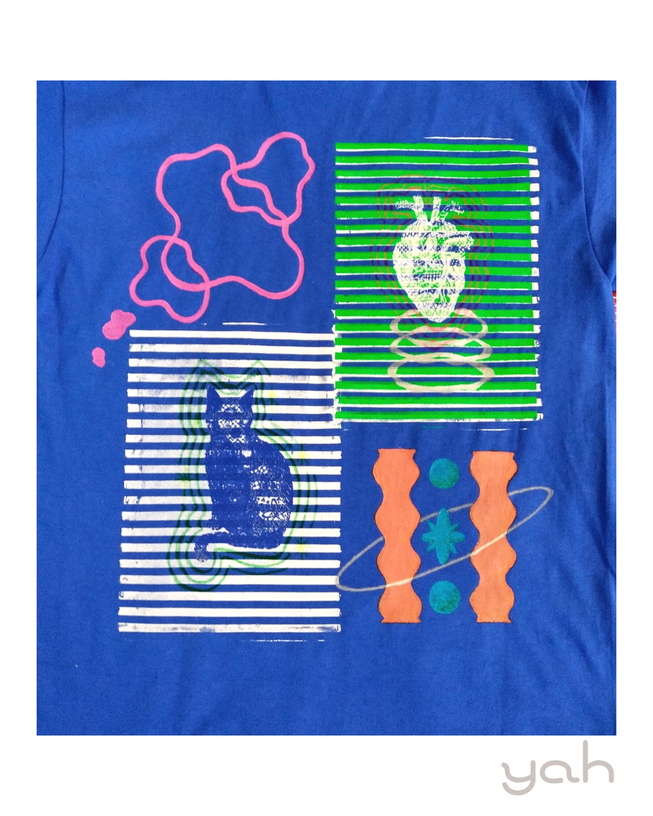 ※こちらのTシャツは手作りの作品であるため、プリントやペイントに微細な違いが生じることがあります。これも味わいの一部としてお楽しみいただける方にご購入いただければ幸いです。