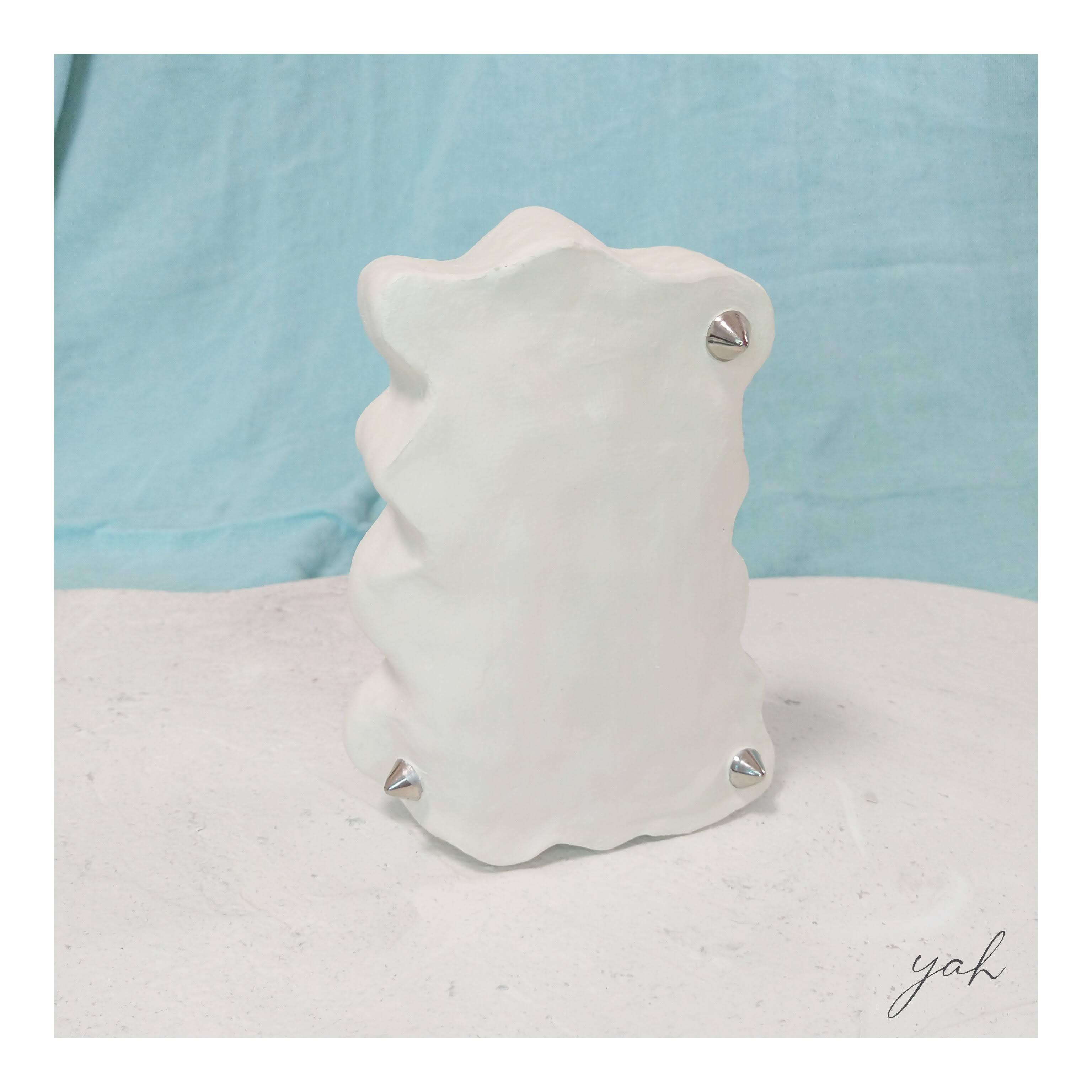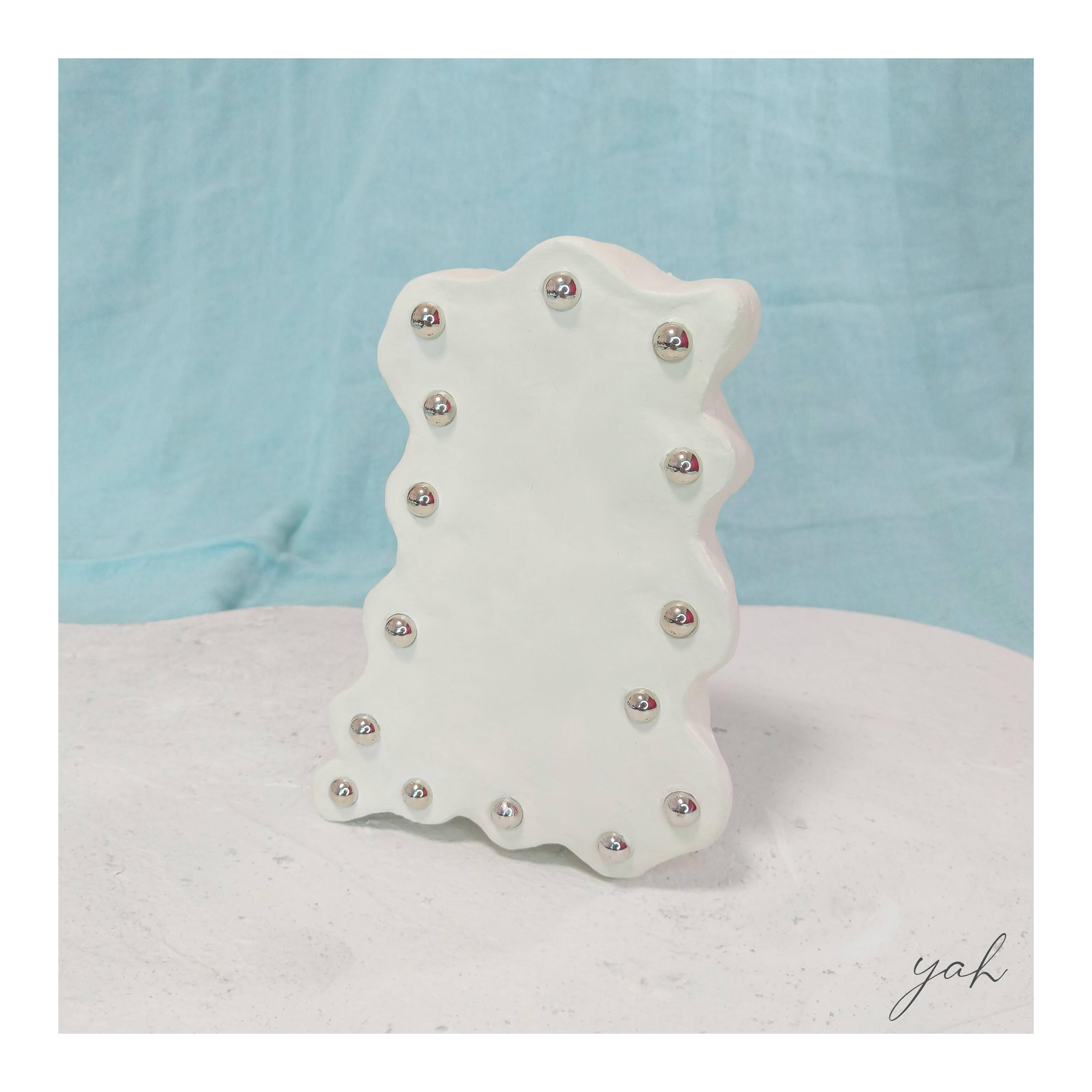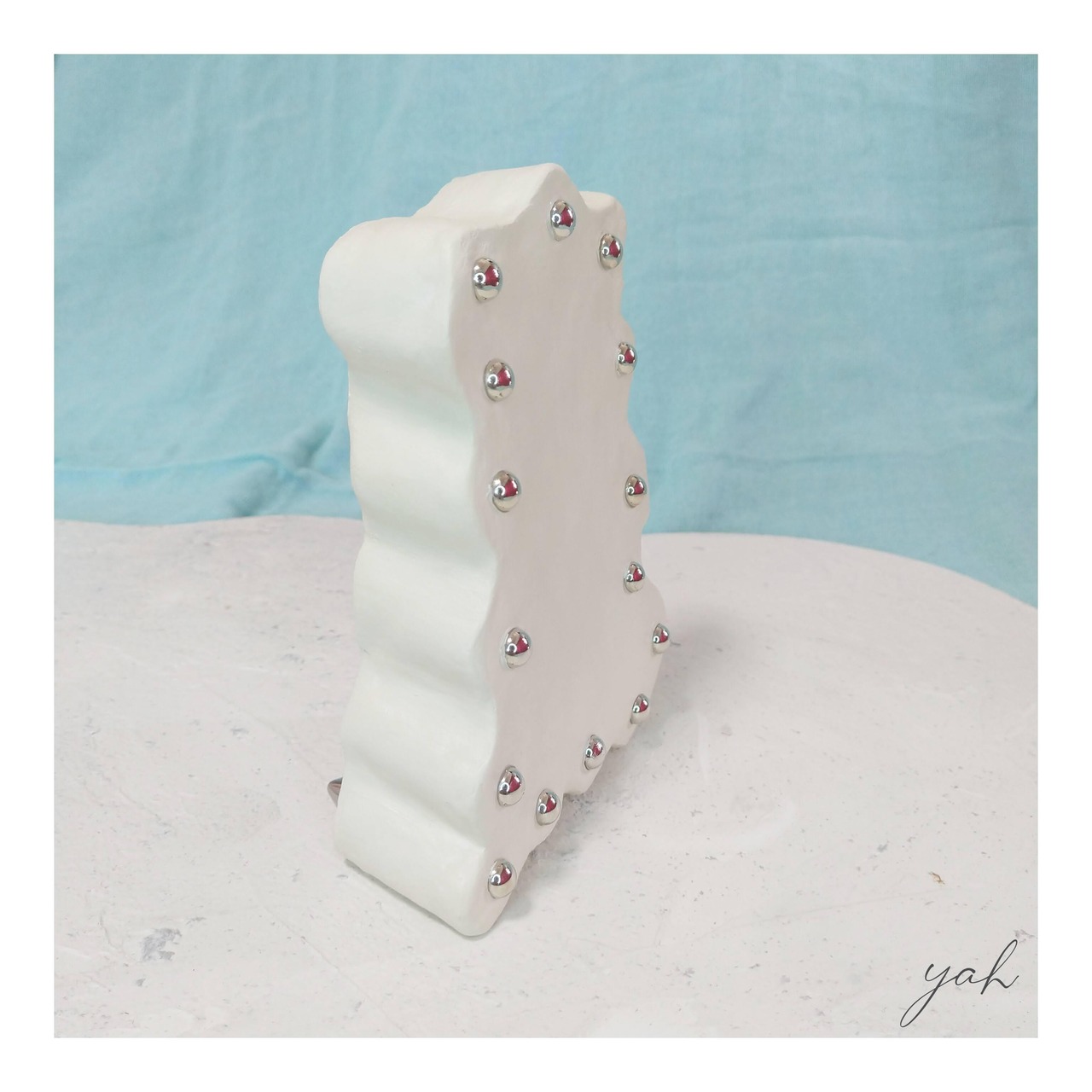 抽象的な形に鋲(スタッズ)がキラッと光るオブジェ。